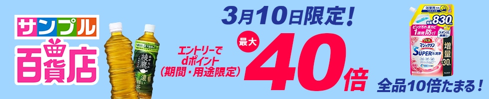 - キャンペーン実施日にdショッピング・dショッピングサンプル百貨店でご注文いただいた各商品の商品代金(税抜)ごとにポイントを進呈いたします。