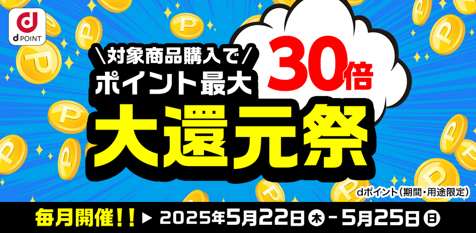 - ポイント最大30倍とは、通常100円(税抜)のご利用につきdポイントが1ポイント進呈されるところ、追加でdポイント(期間・用途限定)を29ポイント進呈することを意味します。