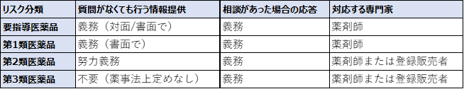 | 取扱う一般用医薬品の区分 | 第二類医薬品、指定第二類医薬品、第三類医薬品 |