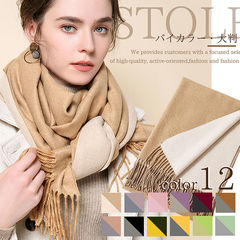 【カシミヤタッチ!】マフラー レディース メンズ 大判 バイカラー NEK 7988070 リバーシブル 大きいマフラー あたたかい 無地 大判ストール 厚手マフラー ソフトタッチ カシミヤタッチ カシミ (Onesize,ベージュ)