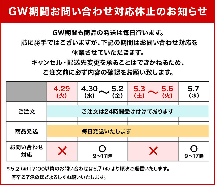 ご注文の際は日数に余裕を持ってのご利用をお願い申し上げます。