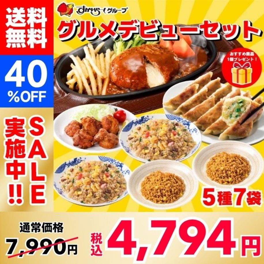 【40%OFF!通常7,990円→4,794円!】おすすめ商品1個プレゼント!すかいらーくグルメデビューセット(5種7品) [本格炒飯2袋・メキシカンピラフ2袋・チーズインハンバーグ1個・本格生餃子1袋・ももから揚げ1袋]