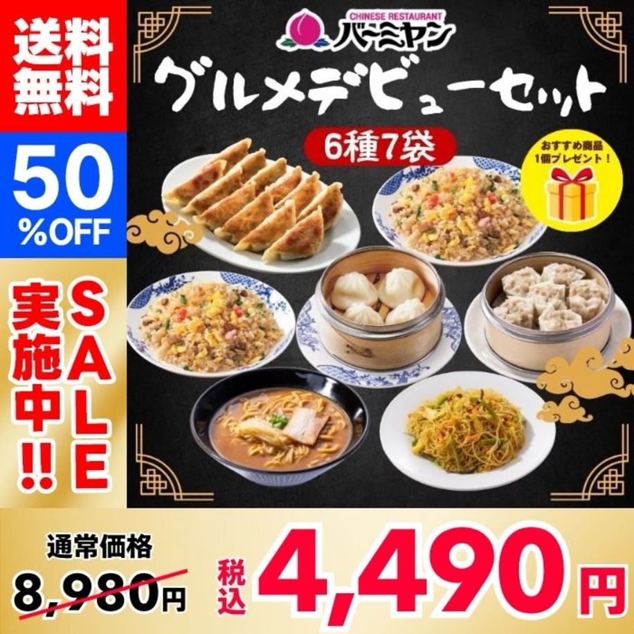 【50%OFF!通常7,380円→3,690円!】すかいらーく バーミヤン 満腹セット(4種7品)[キムチ炒飯3袋・肉焼売1袋・カレービーフン2袋・本格生餃子1袋]