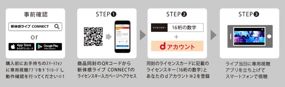 - ※詳しいサービス内容・サービス提供条件については、新体感ライブCONNECT公式サイトとご利用規約をご確認ください。