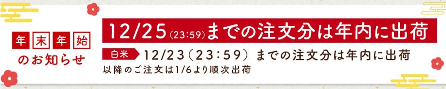 12/25 まで、白米以外ご注文受付分を年内に出荷