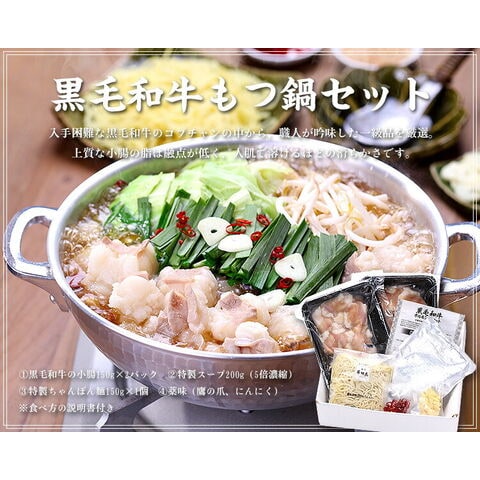 希少な霜降り黒毛和牛もつ鍋2〜3人前セット(小腸/コプチャン300g+特製スープ+ちゃんぽん麺+薬味)