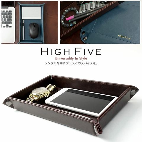 【無料抽選プレゼント】HIGH FIVE たためるフェイクレザートレイ 長方形 お手入れしやすいPUレザー black/ブラック