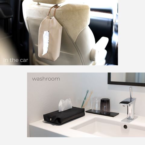 目につく場所にあると生活感の出てしまうティッシュをおしゃれにカバー。ナチュラルなお部屋にもモダンなスタイルにも溶け込むシンプルなアイテムです。横置きはもちろん、軽量なので付属の紐で吊り下げにしても便利です。