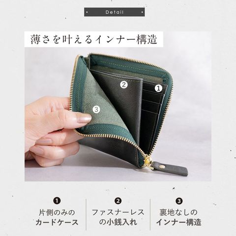 小銭入れ部分のファスナーを取り除いたスマートなデザイン。