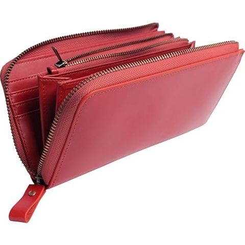 【無料抽選プレゼント】Dom Teporna Italy 通帳も入る本革長財布 カード大容量15枚 100万円入る red/レッド