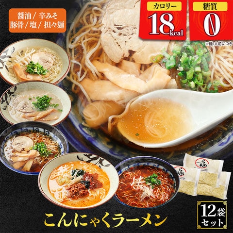こんにゃくラーメン 12パック Aセット ( 醤油×3 辛味噌×3 塩×2 豚骨×2 担々麺×2 ) 糖質ゼロ 糖質オフ 糖質0 糖質OFF 国産 ダイエット 豆乳こんにゃく麺 送料無料 訳あり わけあり 食品 家庭用