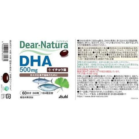 | DHA含有精製魚油(国内製造)、酵母エキス、イチョウ葉エキス末/ゼラチン、グリセリン、ミツロウ、乳化剤、酸化防止剤(V.E) |