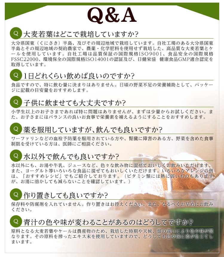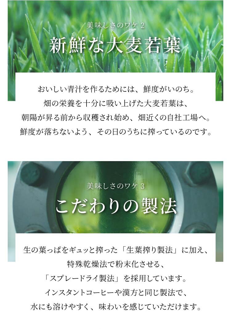 | 大麦若葉(国産)、水溶性食物繊維、デキストリン |
