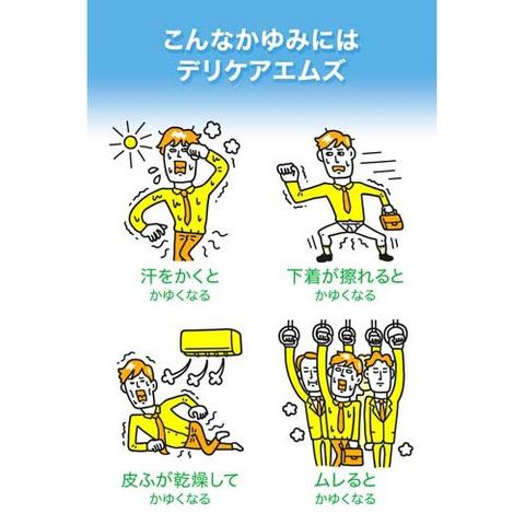 ●デリケアエムズは、デリケートエリアのかゆみを考えて開発された治療薬です。スッキリとしたクール感が、かゆみ感覚をすばやく鎮め、3つの特長(かゆみを止める、炎症を鎮める、雑菌を抑える)で、悪化の要因となるかゆみの悪循環を抑えます。汗やムレの多いデリケートエリアに適したサラッとべたつかないクリームタイプです。
