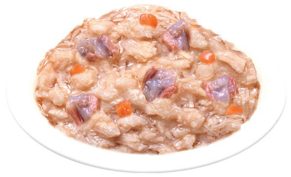 | 鶏肉(ささみ)、鶏軟骨、人参、鶏脂、でん粉、寒天、大豆油、コラーゲンペプチド、DHA・EPA含有精製魚油、ミネラル類(Ca、Fe、Cu、Mn、Zn、 I、K、Mg、Se)、増粘多糖類、ビタミン類(A、D3、E、B1、B2、B6、葉酸、B12、コリン、ビオチン)、コンドロイチン硫酸Na、紅麹色素、緑茶エキ ス |