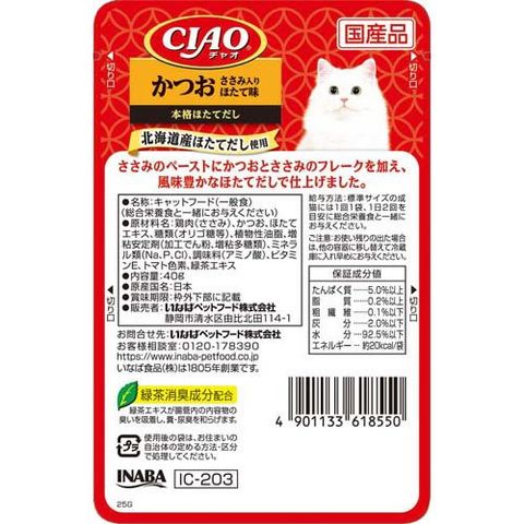 【いなば チャオ パウチ かつお ささみ入り ほたて味の商品詳細】