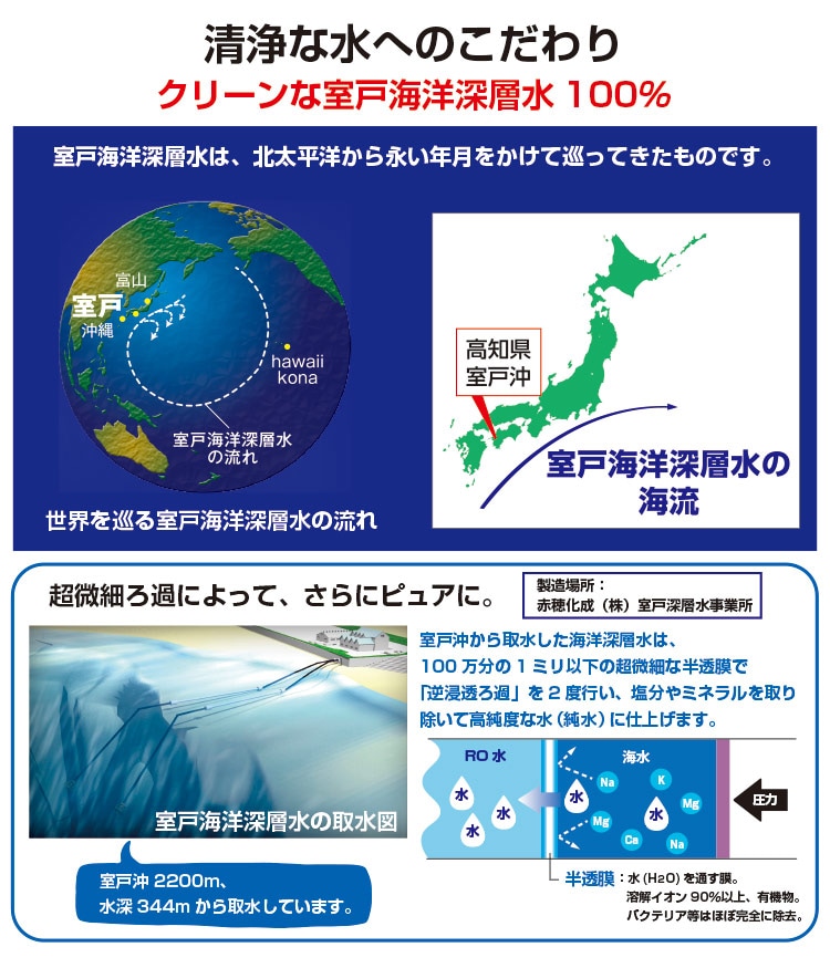 ●清浄性に優れた高知県の室戸海洋深層水を100%使用