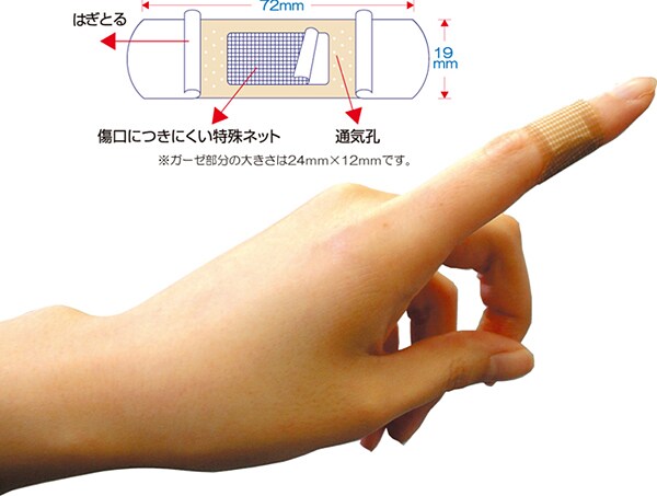 ●粘着性に富んだプラスチック絆創膏を使用していますので、お肌のどの部分にもピッタリとはれます。