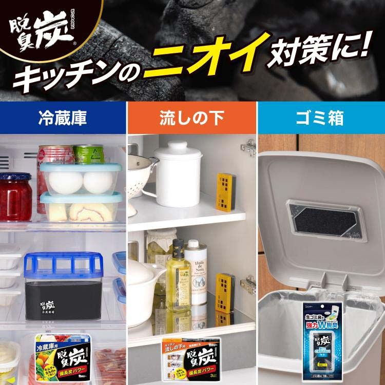 ●冷蔵庫の気になるニオイを備長炭と活性炭の力でしっかり脱臭!