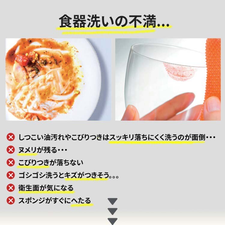 ●油もこびりつきもスッキリ落とす。グラスもピカピカ!