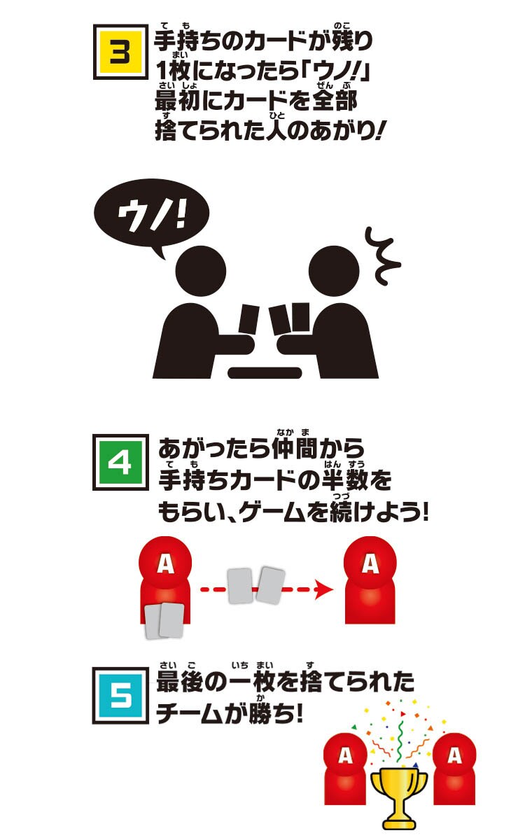 ●最後の1枚になったら、「UNO!」と叫ぶのを忘れずに。