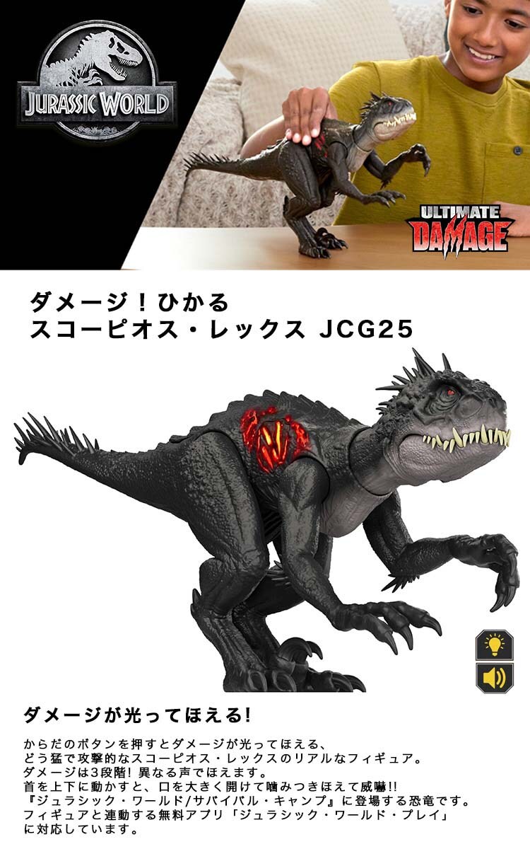 【ジュラシックワールド ダメージ!ひかるスコーピオス・レックス 恐竜フィギュア JCG25の商品詳細】