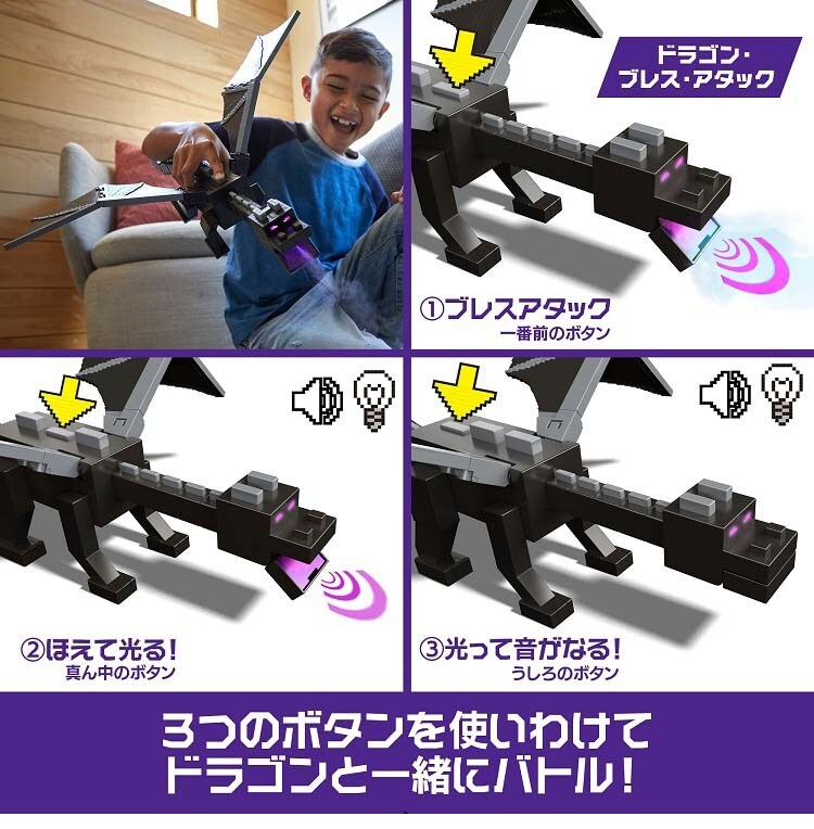 ●マインクラフトの世界観を迫力たっぷりに再現した、アルティメット・エンダードラゴンの大型アクションフィギュア&アクセサリーセット!