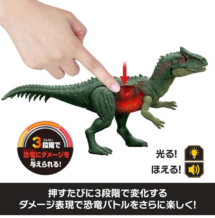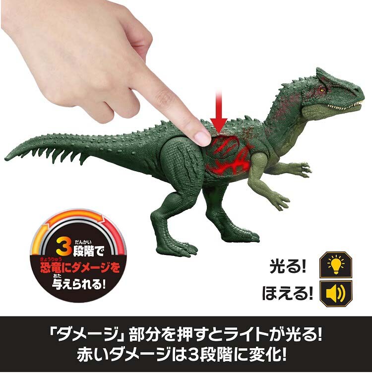 【ジュラシックワールド ダメージ!ひかる アロサウルス JLF33の商品詳細】