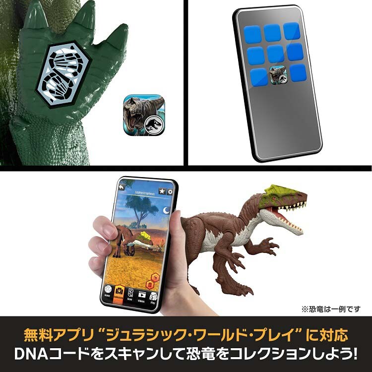 ●足にあるコードを専用無料アプリ「ジュラシック・ワールドプレイ」でスキャンすると、デジタル恐竜コレクションも楽しめます。