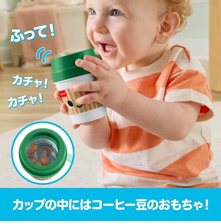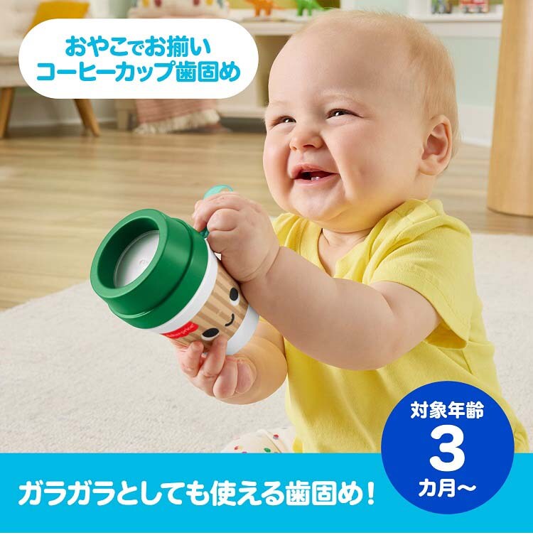 ●フィッシャープライスの「おやこでお揃い コーヒーカップ歯固め」で、赤ちゃんも目覚めの一杯。フレッシュな感覚遊びで1日をはじめましょう。