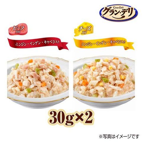 グラン・デリ 国産鶏肉 パウチ 2つの味わい 成犬用 ほぐし ビーフ&チーズ (2種×10セット(1種30g))