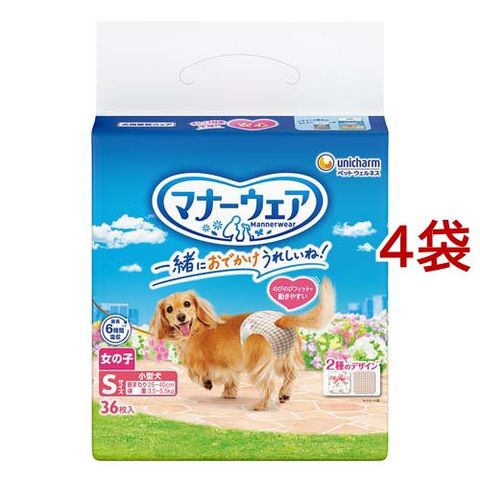 マナーウェア女の子用Sトラッドテイスト 犬用 おむつ ユニチャーム (36枚入*4袋)