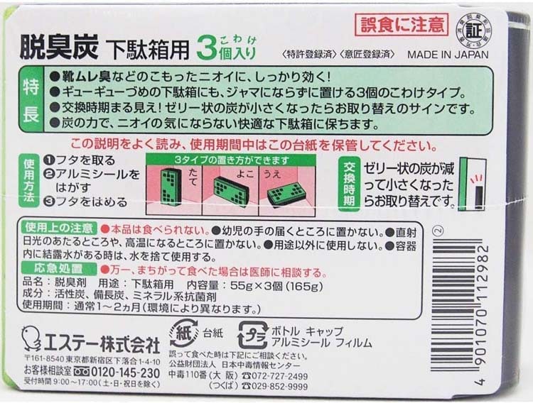 脱臭炭 下駄箱用 脱臭剤 玄関 こわけ3個入 (55g*3コ入*3コセット)