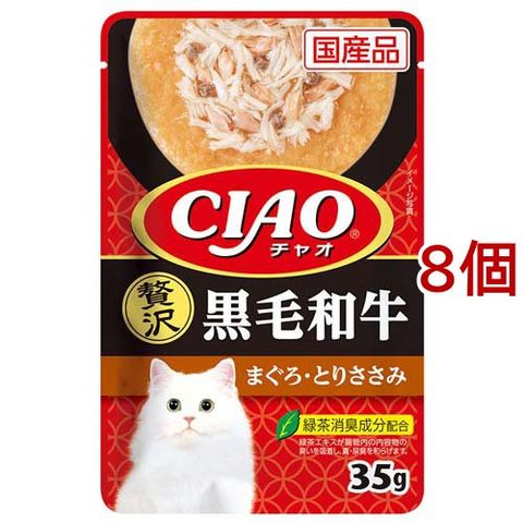 CIAOパウチ 贅沢 黒毛和牛 まぐろ・とりささみ (35g*8コセット)