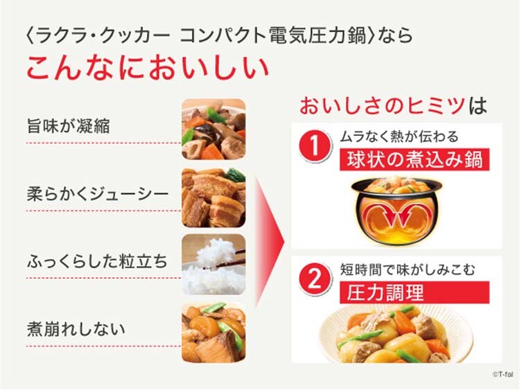 ●ムラなく熱が伝わる「球状の煮込み鍋」と短時間で味がしみこむ「圧力調理」で美味しい仕上がり!