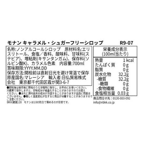 【MONIN(モナン) キャラメル シュガーフリー シロップの商品詳細】