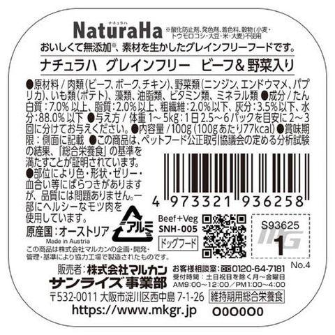 ナチュラハ グレインフリー ビーフ&野菜入り (100g*24コセット)