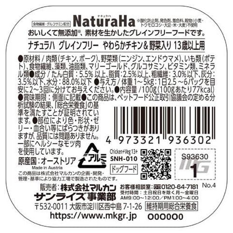 ナチュラハ グレインフリー やわらかチキン&野菜入り 13歳以上用 (100g*96コセット)