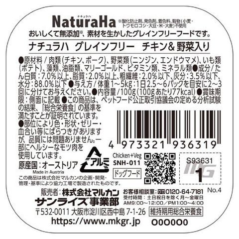 ナチュラハ グレインフリー チキン&野菜入り (100g*24コセット)