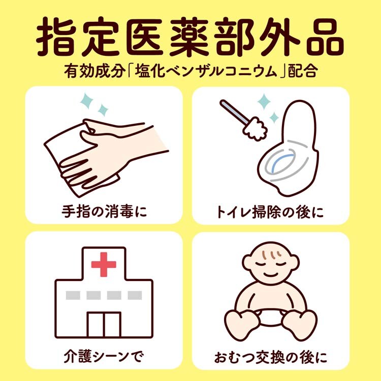 用途例:手指の消毒に・掃除の後に・介護シーンで・赤ちゃんのおむつ交換の後に