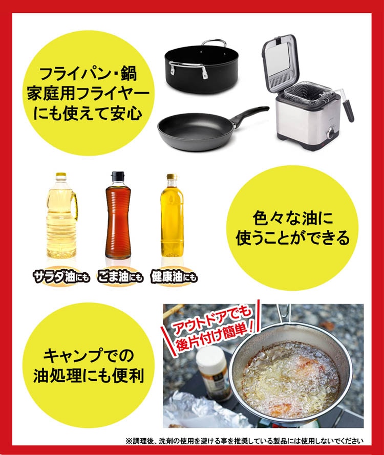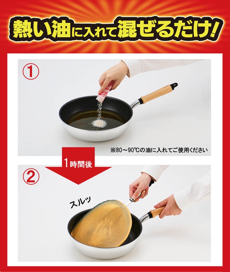 ●揚げカスもそのまま一緒に固めるので、フライパンやナベの後始末が簡単です。