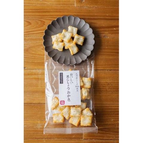 九州産水稲もち米100%の生地をサクッと焼き上げ純正ごま油と黒こしょうを振り掛け、塩で味付けした、胡麻油の風味と黒こしょうがマッチしたおかきです。