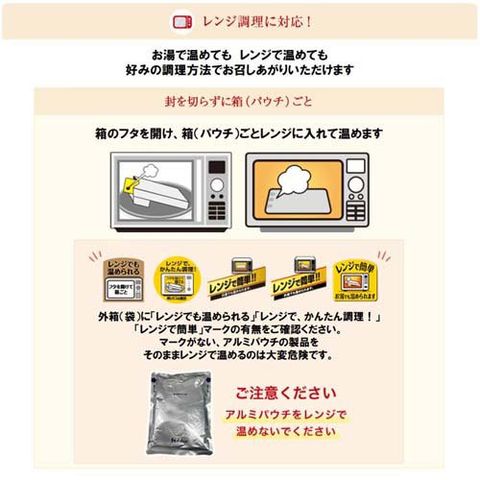 ●箱に入れたまま電子レンジで簡単に調理ができます。
