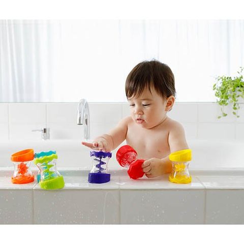 ●上部の穴から水をかけるとしかけがクルクル、なみなみ同士をくっつけてみよう!同時に2つのしかけで遊べます。