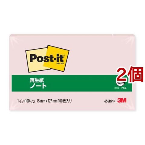 ポスト・イット 再生紙 スタンダード ノート655 ピンク 655RP-P (100枚入*2コセット)