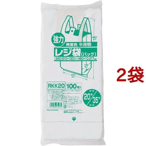ジャパックス 業務用強力レジ袋 半透明 (東20号・西35号) RKK20 厚み:0.017mm (100枚入*2コセット)