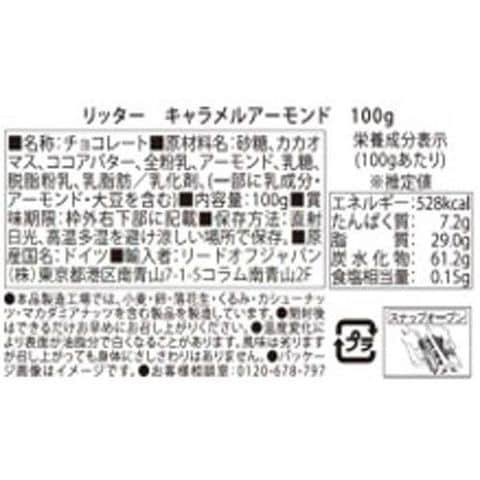 | 砂糖、カカオマス、ココアバター、全粉乳、アーモンド、乳糖、脱脂粉乳、乳脂肪/乳化剤、(一部に乳成分・アーモンド・大豆を含む) |