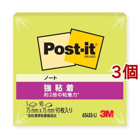 ポスト・イット 強粘着 スタンダード ノート654 ライム 654SS-LI (90枚入*3コセット)