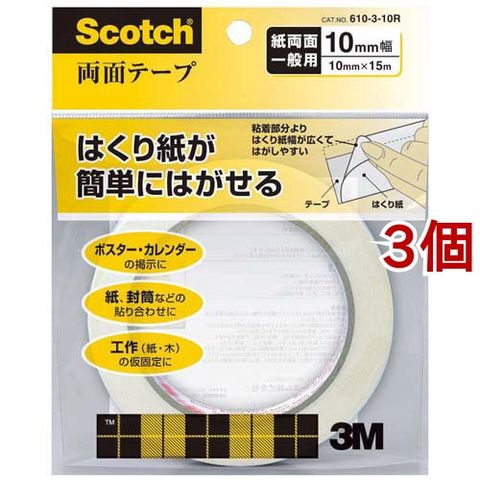 3M スコッチ 両面テープ 掲示用 封かん用 10mm×15m 610-3-10R (1巻*3コセット)