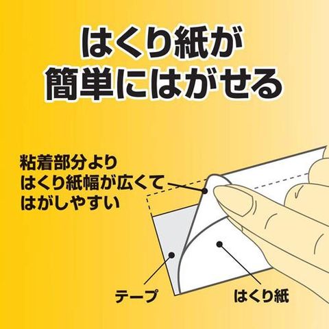 ●粘着部分より、はくり紙幅が広くてはがしやすい両面テープ